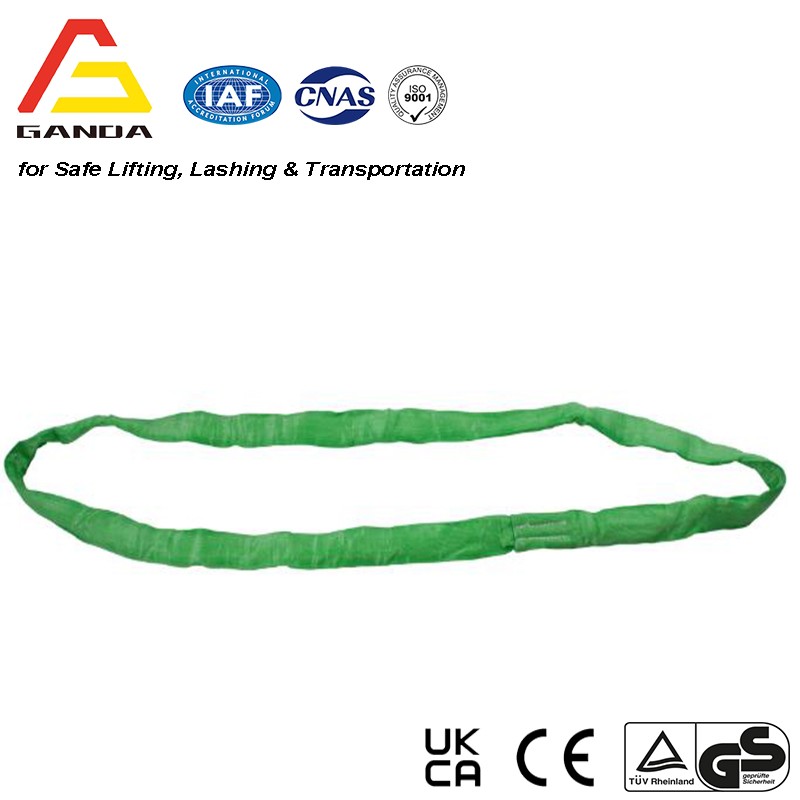 GANDA (G&A) Round slings are a type of synthetic lifting sling that are typically made from 100% polyester material. Synthetic Round slings are some of the most common pieces of rigging equipment that you’ll find at any job site because they’re strong enough to support heavy loads, yet are extremely versatile and can be used effectively for a variety of different applications.